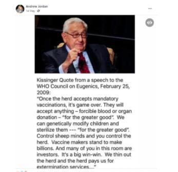 ভান্ডাফোরের_বিস্তারিতঃ “প্ল্যানডেমিক” পত্রিকা ও তাদের উৎস বিষয়ে — ১) “প্ল্যানডেমিক” পত্রিকাপন্থীরা অতি উৎসাহী এবং আবেগপ্রবণ হয়ে নানান গুজব ছড়াচ্ছে। তাদের বেশিরভাগ সূত্রের উৎস যুক্তরাষ্ট্র এবং ইউরোপের কিছু ব্লগ এবং ফেসবুক গ্রুপ। সেখান থেকে নিয়ে “টেলিগ্রাম” নামক মেসেঞ্জার অ্যাপসে গ্রুপ গঠন করে ছড়াচ্ছে। এবং পত্রিকায় ছাপাচ্ছে।২) যাদের অ্যান্ড্রয়েড মোবাইল, কম্পিউটার নেই, যারা সূত্র ও তথ্য যাচাই করতে অক্ষম তাদের মধ্যেই এই গুজব গেঁথে বসেছে।৩) তারা বলে যে, “টেলিগ্রাম” হলো সত্য জানার জায়গা; “গুগুল” যেহেতু যুক্তরাষ্ট্রের তাই সেখানে আসল খবর থাকবে না। ইত্যাদি নানান মনগড়া কথা প্রচার করছে।যদিও, “টেলিগ্রাম” অ্যাপস-এর সদর দপ্তর :– আইনি :- তোরতোলা, ব্রিটিশ ভার্জিন দ্বীপ, এবং কারিগরি :- দুবাই, আরব আমীরশাহী। শুরু ২০১৩ সালে।৪) এদের একাংশ “অ্যাওয়েকেন ইন্ডিয়া মুভমেন্ট” নামক সংস্থার সঙ্গে যুক্ত। ৫) এদের মধ্যে রয়েছে স্বঘোষিত “মেমোরিম্যান” হিসেবে প্রচার করা এক প্রতারক বিশ্বরূপ রায়চৌধুরী; প্রতারণার মামলায় তিনি পলাতক। এই প্রতারকের গোষ্ঠীর নাম “বি.আর.সি”। ৬) এদের হয়ে “টেলিগ্রাম” অ্যাপসটি চালান জগন্নাথ চ্যাটার্জি সহ কয়েকজন। এদের বিরুদ্ধে অভিযোগ, ইনি ছদ্মবেশী হিন্দু এবং আধুনিক বিজ্ঞানের চিকিৎসার বিরোধী এবং প্রাচীন ভারতের বৈদিক, পৌরাণিক চিকিৎসার পক্ষে, হোমিওপ্যাথি চিকিৎসার পক্ষে সওয়াল করেন, যা আদপেই অপবিজ্ঞান। ৭) অসংখ্য হোমিওপ্যাথি ডাক্তার এবং ভক্ত যুক্ত এই সংস্থার সঙ্গে। হোমিওপ্যাথি নামক অপবিজ্ঞানের বিরুদ্ধে জেমস র‍্যান্ডি, প্রবীর ঘোষ, শমীন্দ্র ঘোষ, অভিষেক দে প্রমুখের চ্যালেঞ্জ না নিয়ে হোমিওপ্যাথি ডাক্তার এবং ভক্ত অনেকেই পলায়ন করেছেন। ৮) এদের মধ্যে বিজেপি আরএসএস-এর সমর্থক, কর্মী যুক্ত; যারা প্রাচীন ভারতের বৈদিক ও পৌরাণিক অবৈজ্ঞানিক চিকিৎসা পদ্ধতি রূপায়ণের প্রচার করে; ফলে অনেকেই এখন এদের সঙ্গ ত্যাগ করেছেন। ৯) এদের সঙ্গে যুক্ত হয়েছে কিছু নকশালপন্থী, যাদের জন্ম নকশাল আন্দোলন শেষ হওয়ার পরে। ১০) এদের কতিপয় নারী এবং পুরুষের কাজ আবেগের দ্বারা বিপথে চালিত করা এবং অনৈতিক সম্পর্ক স্থাপন করা, উত্যক্ত করা, ব্যক্তিস্বার্থ সিদ্ধি করা; এমন বহু অভিযোগ পাওয়া গেছে; তাই অনেকেই এই আন্দোলন থেকে সরে গিয়েছেন।১১) ২৬/০২/২০০৯-এ কিসিঞ্জার কোথাও ভাষণ দেননি।১২) ২০০৯-এর বিশ্ব স্বাস্থ্য সংস্থার কোনও সভায় যোগদান করেননি এবং যোগদান করার কোনও পদাধিকারী এক্তিয়ার তাঁর ছিল না।১৩) কিসিঞ্জারের সমস্ত ভাষণ আর্কাইভ করা হয়েছে; সেখানেও উল্লেখিত বক্তব্য পাওয়া যায়নি।১৪) তিনি ২০০৯ সালে মাত্র তিনটি ভাষণ দিয়েছিলেন সেখানেও উল্লেখিত প্রসঙ্গ নেই।১৫) সর্বোপরি বিশ্ব স