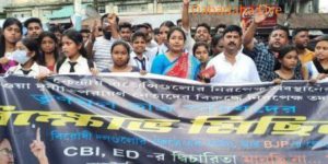 দাবদাহ লাইভ, শিলিগুড়ি, সজল দাশগুপ্তঃ কেন্দ্রীয় তদন্তকারী সংস্থার বিরুদ্ধে রাজনীতিকরণের অভিযোগ তুলে বিক্ষোভে সামিল হল দার্জিলিং জেলা তৃণমূল ছাত্র পরিষদ। বৃহস্পতিবার সিবিআই অনুব্রত মণ্ডলকে গ্রেফতার করেছে। আজ দার্জিলিং জেলা তৃণমূল ছাত্র পরিষদের উদ্দ্যোগে এক মিছিল শিলিগুড়ি শহর পরিক্রমা করে। এদিন এই মিছিলে পায়ে পা মেলায় তৃণমূল ছাত্র পরিষদের একাধিক কর্মী ও সমর্থকদের পাশাপাশি দার্জিলিং জেলা তৃণমূল কংগ্রেস সমতলের সভানেত্রী পাপিয়া ঘোষ, তৃণমূল কংগ্রেসের জেলা চেয়ারম্যান অলোক চক্রবর্তী সহ দার্জিলিং জেলা তৃণমূল কংগ্রেসের মুখপাত্র দেবব্রত দত্ত। এদিন এই মিছিলটি শিলিগুড়ি কলেজের সামনে থেকে শুরু হয়ে হাসমিচক হয়ে শহরের বিভিন্ন পথ পরিক্রমা করে। এদিন দার্জিলিং জেলা সভাপতি জানান তৃণমূল কংগ্রেসকে এইভাবে শেষ করা যাবে না, কারন আমাদের মুখ্যমন্ত্রীর নাম মমতা বন্দোপাধ্যায়। আর আমাদের দলের নাম তৃণমূল কংগ্রেস। তাই মুখ্যমন্ত্রীর নির্দেশ মেনেই আজকের এই আন্দোলনে নেমেছি। তাই মুখ্যমন্ত্রীর নির্দেশ মেনেই আমরা সামনের পথে এগিয়ে যাব।