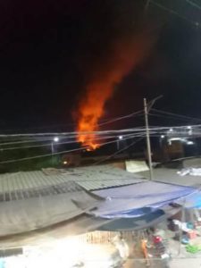 দাবদাহ লাইভ, শিলিগুড়ি, সজল দাশগুপ্তঃ  ভয়াবহ আগুনের কবলে শিলিগুড়ি। শিলিগুড়ির ১৮নং ওয়ার্ডে টিকিয়াপাড়াতে পর পর ১৭টি গ্যাস সিলিন্ডার  ফেটে আগুন ধরে যায় গোটা টিকিয়াপাড়া এলাকায়।   গোটা এলাকাই ক্ষতিগ্রস্থ হয়েছে বলে এখন পর্যন্ত  জানা যায়। এই প্রতিবেদন লেখা পর্যন্ত আগুনে আহত কিংবা কারো শারীরিক ক্ষতির খবর পাওয়া যায় নি।  ওই এলাকার কাউন্সিলার সঞ্জয় শর্মা প্রায় সঙ্গে সঙ্গেই ঘটনাস্থলে এসে উপস্থিত হন। পৌছে যান শিলিগুড়ি তৃণমূল কংগ্রেসের অন্যান্য নেতৃত্বও। প্রায় তেইশটি ইঞ্জিন এসে আগুন নেভানোর প্রচেষ্টা করছে। আগুনের শিখা প্রায় গগনচুম্বী হয়ে পড়ায় এলাকার লোকজন আতঙ্কিত হয়ে পড়েন। কারো আহত হবার খবর না পেলেও ঘটনাস্থলে পৌছে গেছে ছটি আম্বুলেনস। কি করে আগুন লাগল জানা না গেলেও খুব সম্ভবত অসাবধান বসত গ্যাস থেকেই এই দুর্ঘটনার সৃষ্টি হয়েছে বলে জানিয়েছেন এলাকার স্থানীয় মানুষ।