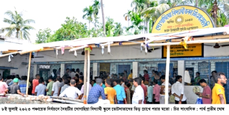 দাবদাহ লাইভ, ব্যারাকপুর, শ্যামল করঃ খড়দহ বিধানসভার অন্তর্গত ব্যারাকপুর ব্লক দুই পঞ্চায়েত সমিতির চারটি পঞ্চায়েতের পাতুলিয়া বন্দিপুর বিলকান্দা-১ ও বিলকান্দা-২ ভোট গ্রহণ হলো অবাধ ও শান্তিপূর্ণ। বেশিরভাগ বুথেই দেখা গেল মানুষের স্বতঃস্ফূর্ত ভোটদানের ও উৎসবের মেজাজ ২৪ ঘন্টা ইন্ডিয়া টিভির ক্যামেরায় ধরা পড়লো তারি বেশ কিছু প্রতিচ্ছবি। দাবদাহ লাইভের ক্যামেরার মুখোমুখি হয়ে খড়দা ব্লক তৃণমূল কংগ্রেসের সভাপতি তথা ব্যারাকপুর-২ পঞ্চায়েত সমিতির প্রার্থী শুকুর আলী পুরকাইত সহ ব্লক তৃণমূল ছাত্র পরিষদের সভাপতি তথা বন্দীপুর পঞ্চায়েতের প্রার্থী মাসুদ লস্কর, ব্লক তৃণমূল সভাপতি শূদ্র ও উদ্বাস্তু সেলের সভাপতি রঞ্জিত ধর, পঞ্চায়েতের প্রাক্তন প্রধান ও তৃণমূল কংগ্রেসের প্রার্থী নুরনাহার বিবি ও পাতুলিয়া পঞ্চায়েতের প্রাক্তন উপপ্রধান কিশোর বৈশ্য তুলে ধরেন বিভিন্ন এলাকার শান্তিপূর্ণ ভোট অবাধ ও সুষ্ঠু। চলছে বলে সংবাদ মাধ্যমকে জানান।