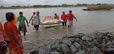 সাপের কামড়ে মৃতদেহ কলার ভেলায় নদীতে সৎকার